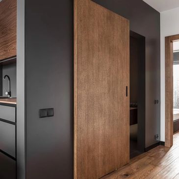 Ahşap paneller ile yerine özel olarak üretilen bu kaplamalar ses ve akustik izolasyon sağlar içerisine gizli kasasız hemyüz kapılar da yapılabilir.