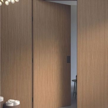 Invisible Door Sürgü Kapı Sistemi, kapının açık ya da kapalıyken duvar yüzeyiyle bütünleşmesini sağlayan yenilikçi bir sürgü kapı sistemidir. Raylar ve tüm taşıyıcı mekanizmalar tamamen gizli yapıdadır; sistem yalnızca kapı panelini görünür kılarak mimaride sade ve kesintisiz bir etki yaratır.