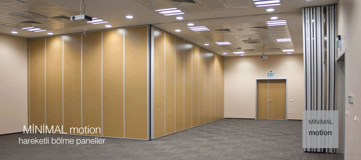 Hareketli bölme paneller konferans,balo,toplantı salonları için en kulanlışlı ve yüksek ses izolasyonuna sahip hareketli bölme panellerdir