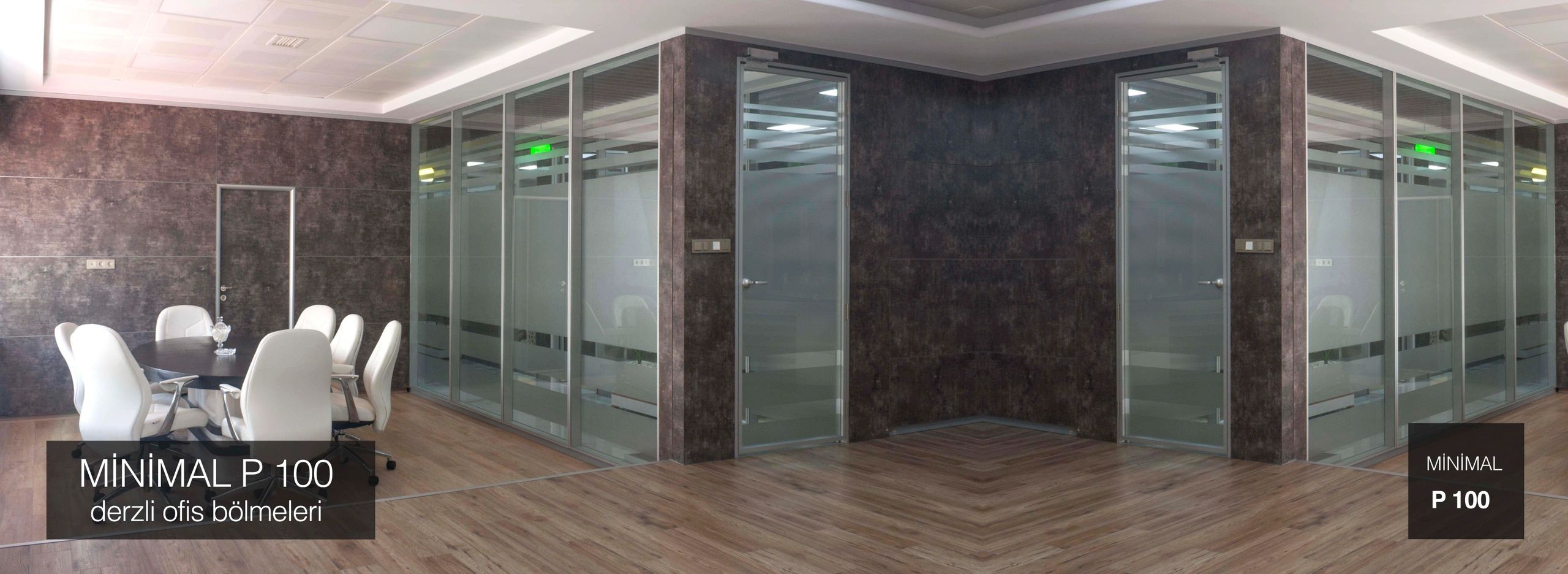 Minimal Bölme P100 sisteminin tamamı alüminyum profillerden oluşmaktadır.Naturel eloksal ,siyah eloksal ya daeloktrastatik toz boyalı olabilmektedir.